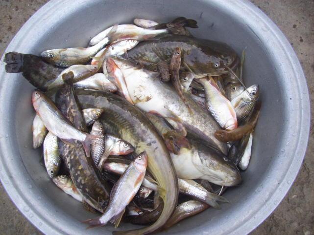 除了钓鱼,最常用的方式还是捕鱼。一种方法是用手抓,河沟里最多的就是小鲫鱼,一天了能摸3斤;还有一种方法叫抢网,(就好像我们现在的抄网,就是前边是平的,大约80cm宽,后边是个半圆,下面是网兜,有一个1.5米长的把,从前端一直到半圆后端,在出来一块,这是专门对付鲶鱼的。);还有一种方法就是璇网,这个就不多说了。
