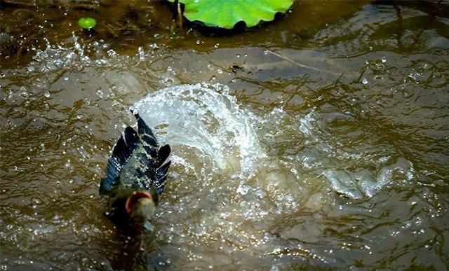 在将钓具和钓饵准备好之后,选择好下竿的位置便可以正式施钓了。在施钓的过程中,我们以钓竿将钓饵送入窝点位置,跟着再利用钓竿将钓饵抬起并放下,轻轻抬离水面即可。此时钓饵在撞击水面时,会发出声音从而引起黑鱼的注意。
