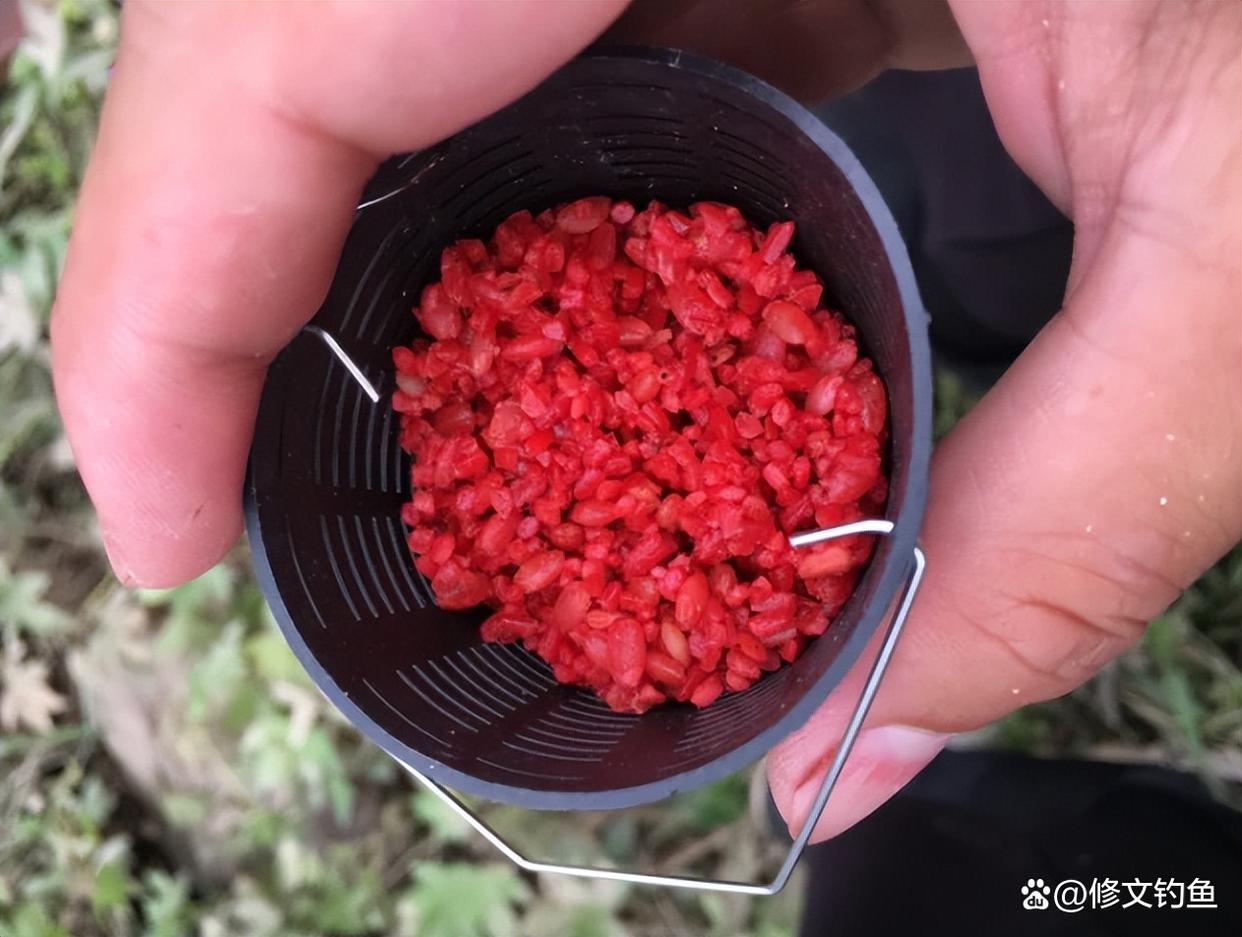 五、走水区域怎么打窝。野河作钓经常会遇到走水,走水时再像上面说的打窝方法就不合适了,我的建议是一种可以用那种粗的红虫颗粒,根据走水快慢用打窝勺打到窝点上游一两米的位置,再一个也可以用面粉加粘粉然后掺酒米握成不规则团打窝,比重极重且雾化散落极慢,特别适合流水,另外走水时窝量可以放大一些。