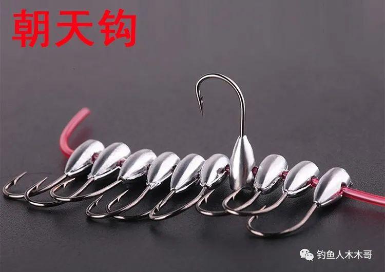 朝天钩大家都不会陌生,是传统钓挂蚯蚓钓草洞鲫鱼的鱼钩。朝天钩名字的由来跟它水下形态分不开,朝天钩在钩柄处焊上不同重量的铅,当鱼钩到水底以后,因钩柄重量的原因,钩柄会朝下,而钩尖会朝上,所以才叫朝天钩。这种鱼钩的设计针对了鲫鱼吃东西头朝下的特性,只要鲫鱼吃鱼钩上的蚯蚓,必定先将钩尖部分吞入,中鱼率非常的高。