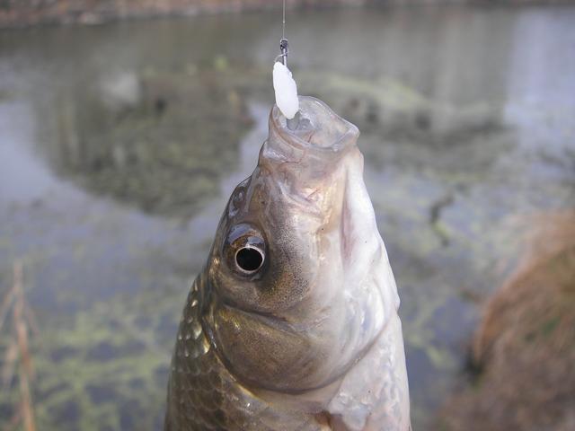 为了避免小鲫鱼咬的次数过多,使用较大的鱼钩无法顺利吞咽。能顺利吞咽的鲫鱼大多是体型较大的。