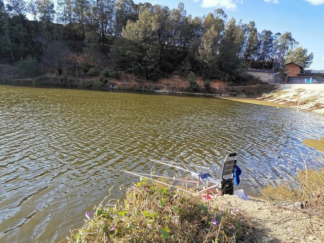 上次的钓位是听老板的意见,去坝尾的水草边钓鲫鱼,但是兰工小勇我们三都是用这个手杆,所以我觉得坝尾并不适合我们,反而水深的坝头用手杆的话,有一定的优势,今天的钓位我就选在大坝左手边的滑尖上,之前有钓友在这个位置上钓了很多这个板鲫跟鲤鱼,这次过来看看能不能沾沾这个窝子的光,早上我同事把我送到大坝上,他就回家去干农活去了