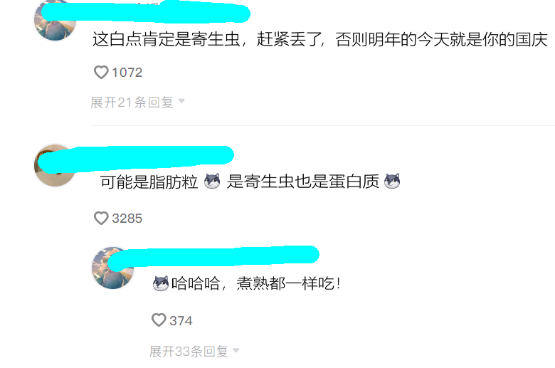 不过,也有人认为这种“鱼肉里的白点”是“脂肪粒”,虽然可能会影响鱼肉的口感,但肯定是可以吃的、“吃不坏人”.....