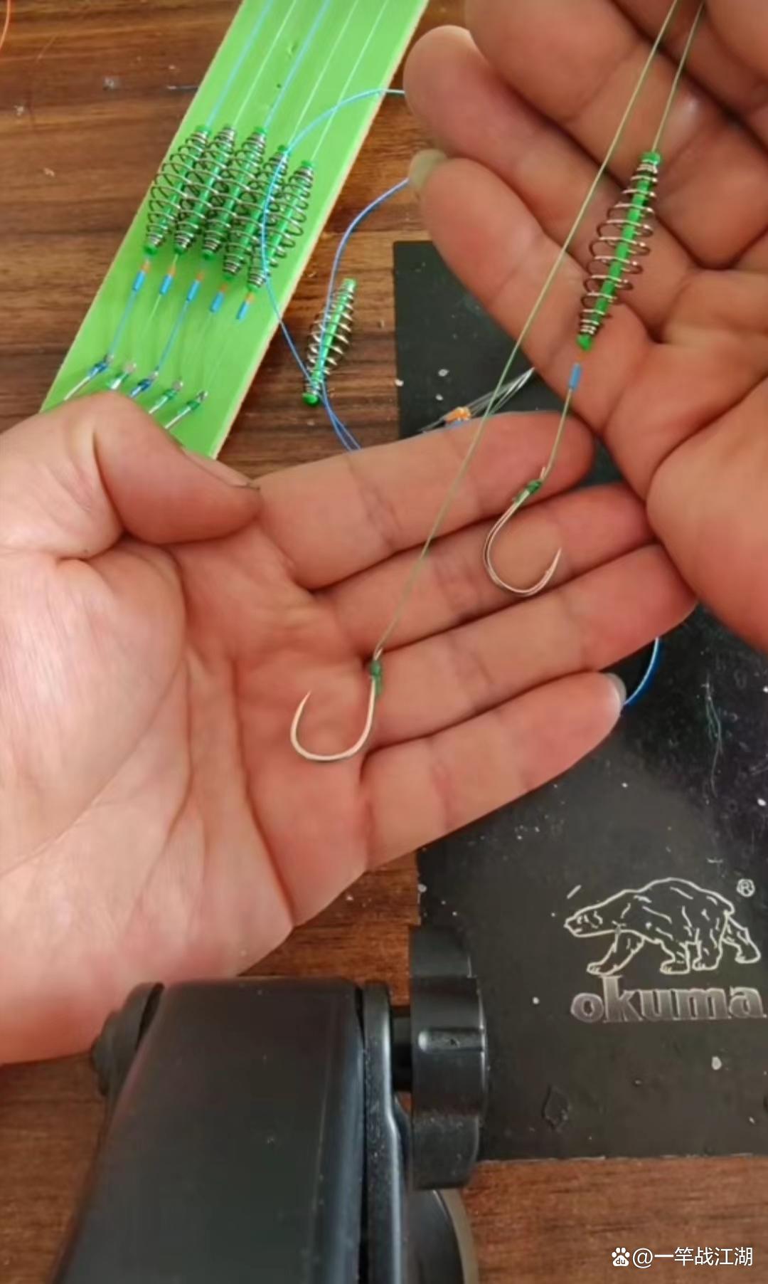 这里说一下钩子,目前浮钓鲢鳙的钩子也比较多,大部分手竿和路滑竿都使用新关东、伊势尼等等,钩条粗、沟门宽的鱼钩,但是现在随着浮钓鲢鳙的热度持续加热,出现了一些其他的钩子,对于新手来说易操作,比如说弹簧钩、带塑料篮的专攻鲢鳙鱼钩等等,操作方便,大家可以根据自己的爱好来使用。