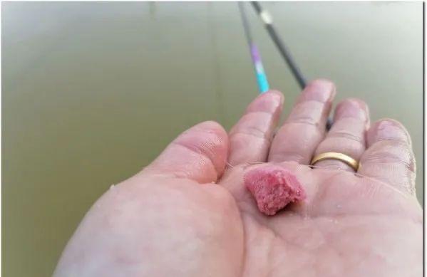 注意:鲢鳙饵开好,静置过后,切记不可将它团成团,就让它保持散的状态。挂钩的时候,随手捏上一个饵上钩就行。还有,在静置好以后,双手轻轻搓散饵料。让它的散装更加丰富。