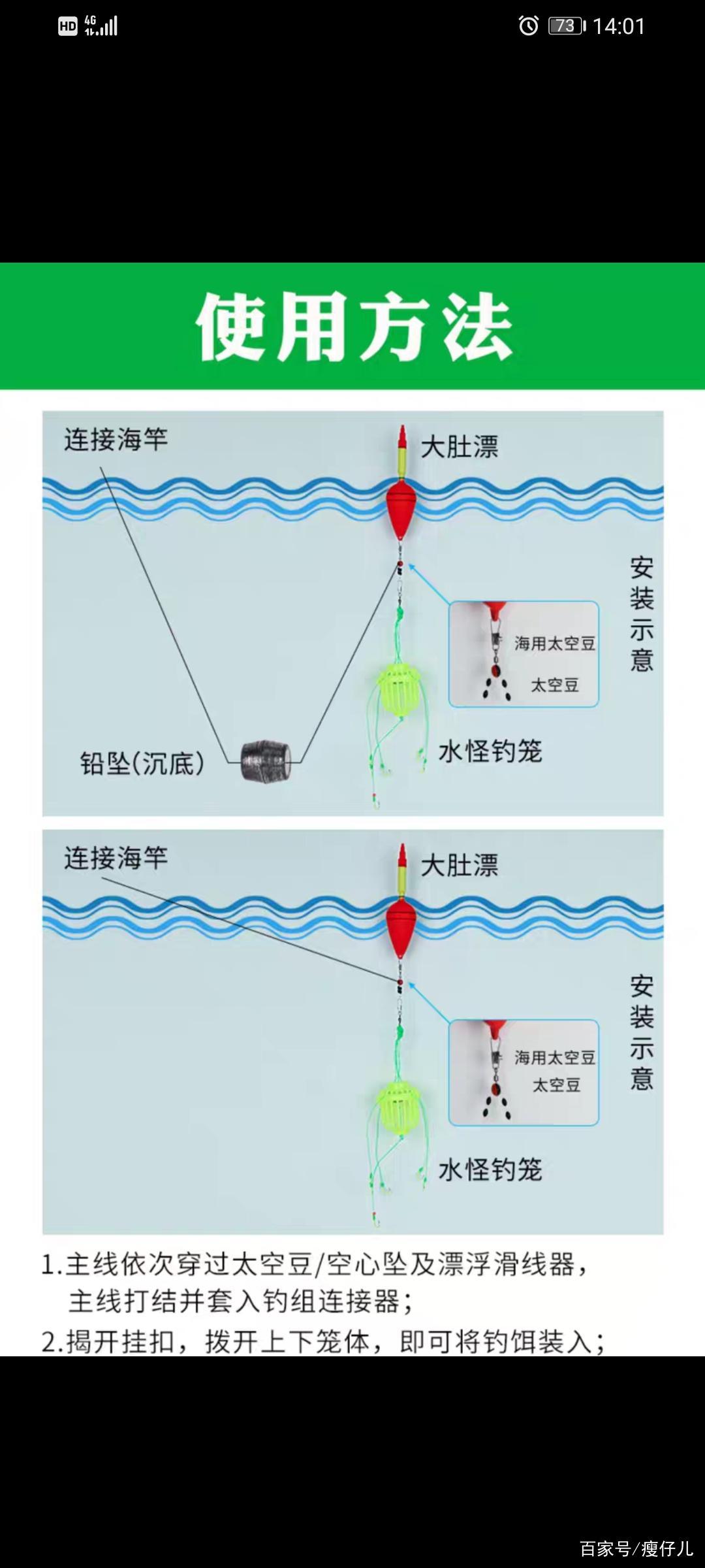下图为完整的海竿浮钓鲢鳙钓组,爆炸钩可替换饵笼: