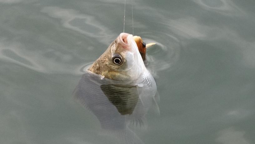 现在鲤鱼的体力还没有恢复,能钓到的多是小型鱼,因此钓组要灵敏一些,1.5号主线搭配1号子线,鱼钩选用中等型号的就可以。