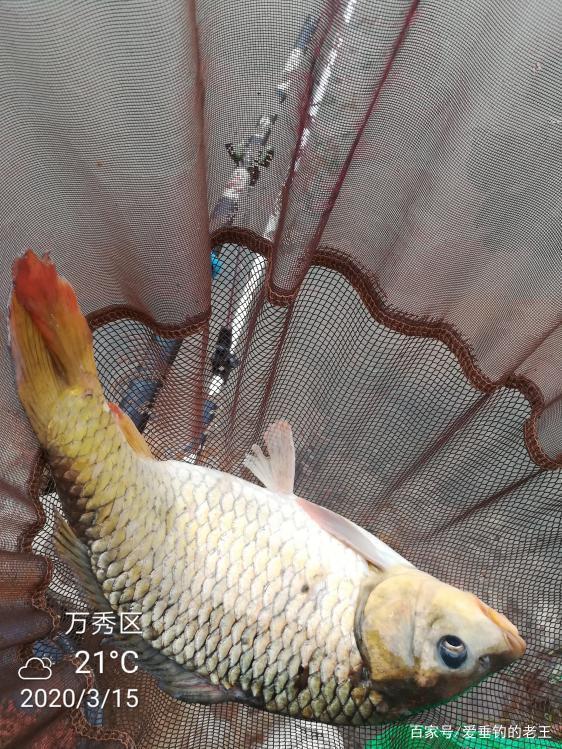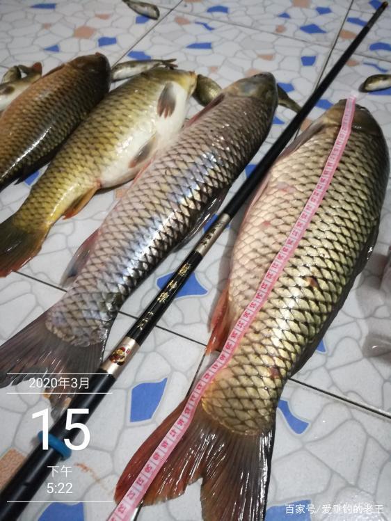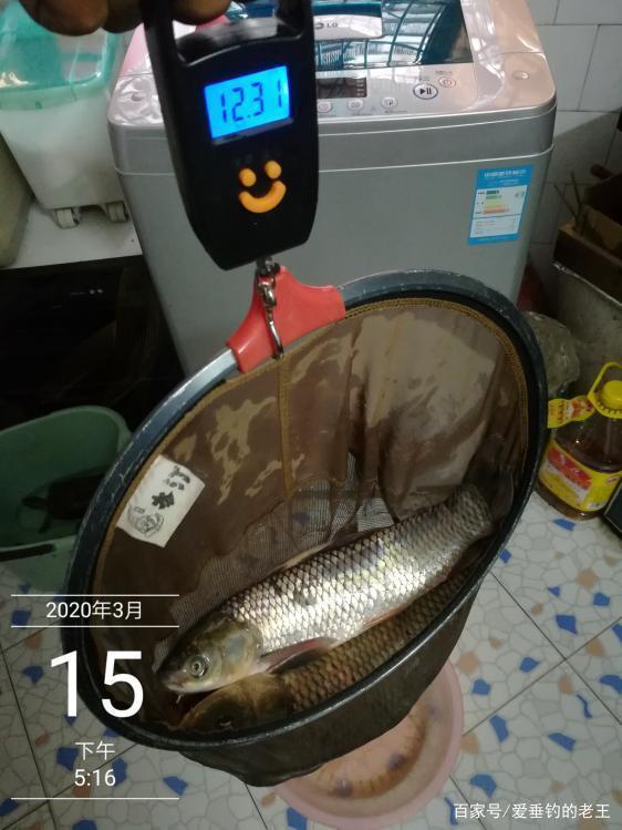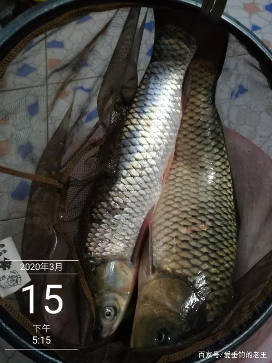 搭好装备,下午1:09时开钓,鱼口还可以,小鲤鱼抢钩较多,整个下午钓了几十条小小鲤鱼,当时就放生了。哈哈,当然也有可观的大鲤鱼、草鱼啊。从下午1:46时开始上第一条大鲤鱼,后来陆陆续续上了三条大鲤鱼和一条大草鱼。鱼获11.85斤(毛重12.31斤-抄网头0.46斤)。单尾鲤鱼4.47斤,长度53cm。单尾草鱼3.48斤,长度53cm。