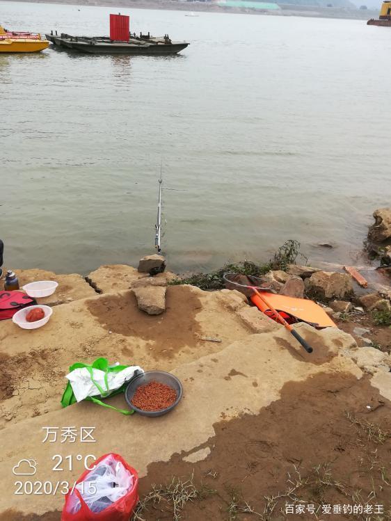 钓点选择在这个位置,梧州市西江河河西蔬菜码头下游50米处