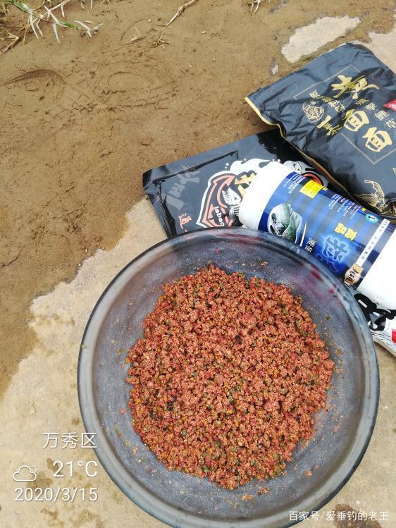 垂钓参数:饵料使用拉爆通杀30%,黄面面30%,螺鲤40%,小药加了少许镇魂散香蛋奶。鱼竿使用神乐暴强硬3.6米,水藻线2.0主线+黄金线1.2子线,鱼钩使用雷鬼新关东0.5号。