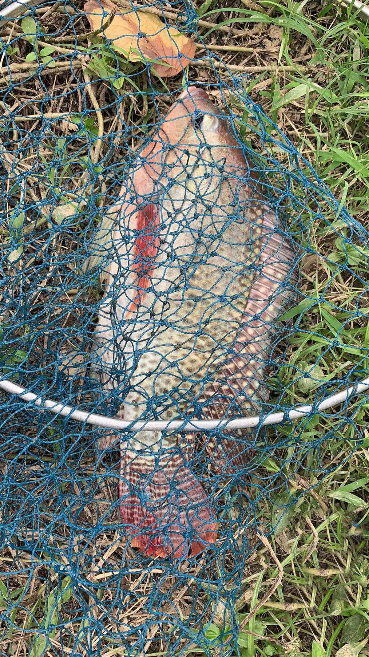 上面这两个操作避免了我们接触罗非,避免被它的鱼鳍刺到,要知道被罗非刺到了还是挺疼的!全程不用接触罗非那么就不会被刺到了,当然如果不熟悉的话还是有一定概率被刺的,只不过比起抄网或者用手抓来说概率小得多。