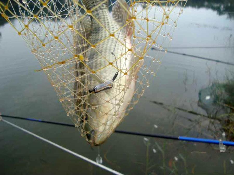 如果觉得颗粒饲料发窝较慢,可以泡开后用铅皮座打大团,这样由于饵料集中,发窝较快,不过用量也较大,要是提鱼时鱼打水厉害些的话马上要跟一团下去。