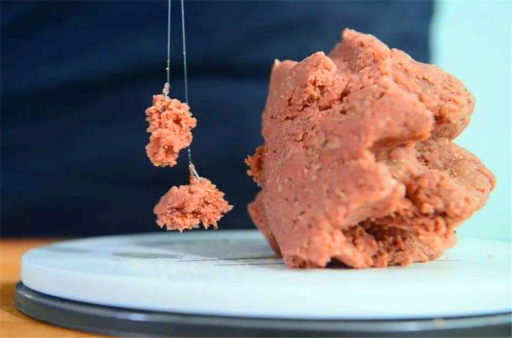 冷冻饵主要原料就是小麦面筋,将面粉和团用水冲洗剩下的就是我们平常说的拉丝粉,也就是小麦的蛋白质;这种拉丝粉吸水过后会形成丝状物质,在搅拌饵料的时候用手揉搓,能使得蛋白纤维更加丝滑,鱼儿容易吸食。