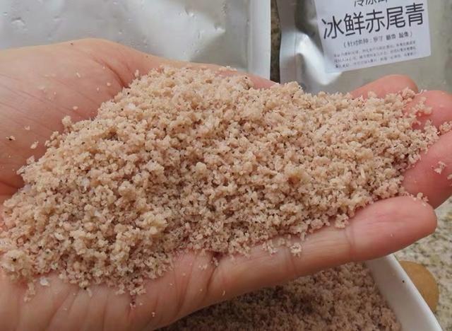 我个人比较喜欢用肝味的罗非鱼冻饵,大概6成的样子,而剩下的4成则全部用赤尾青或者直接买虾粉拌进去就可以了,这个有些人说是三七比较好,其实四六区别也不大。
