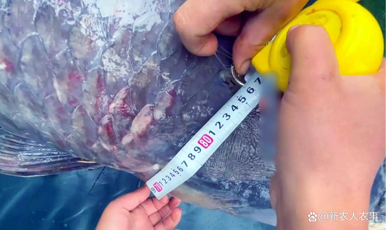 经测量,这条大青鱼腰围1.05米,头围有0.86米,长达1.73米,重达136斤。当它被成功地拉上岸以后,现场立马就轰动了起来,很多人甚至比钓到这条大鱼的当事人还要激动。